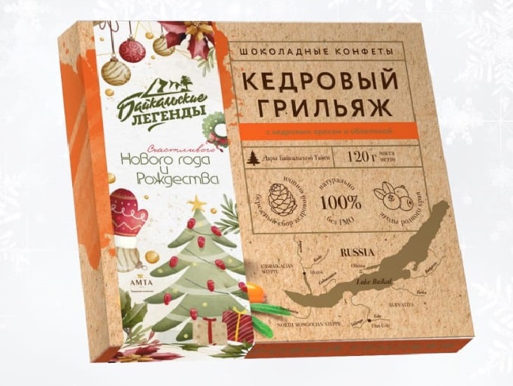 Кедровый грильяж «БАЙКАЛЬСКИЕ ЛЕГЕНДЫ» с облепихой КФ «АМТА»