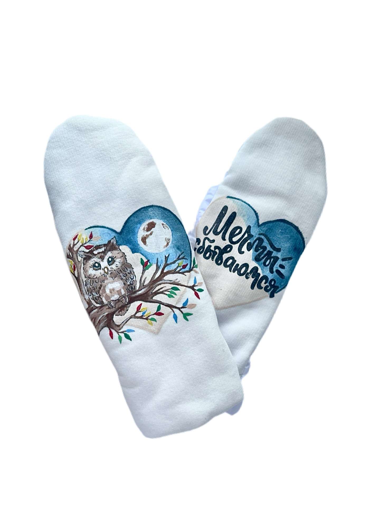 Варежки теплые, на синтепоновом подкладе. Уникальный рисунок выполнен вручную.